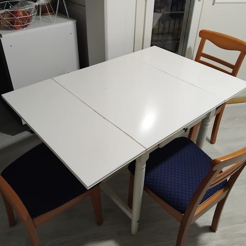 VIHALS dinning table, White. Madeof wood and metal. All parts are complete. Needs to be assembled.