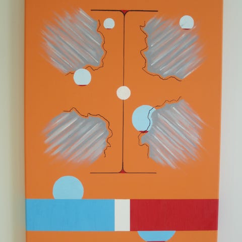 Liiduilla, vesiväreillä ja musteella toteutettu työ. Tulitikkuaski kertoo koon.