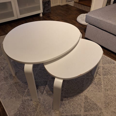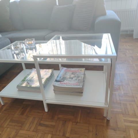 Myydään valkoinen Ikean Vittsjö-sohvapöytä. Tämän valkoisen värin valmistus lopetettu. Alle puoli vuotta ollut käytössä, mutta joitain pieniä käytön jälkiä lasipinnasta saattaa löytyä.