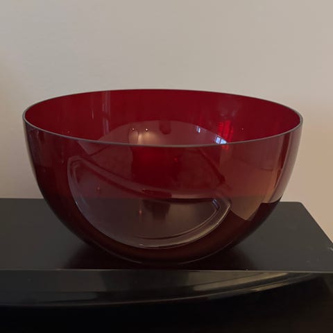 Kaj Franck -jälkiruokakulhot 5 kpl, kulhomalli 1334, tuotannossa 1953-1963. Nuutajärven lasi. Ohutta lasia: kahdessa kulhossa reunassa pienenpieni särö, näkyy viimeisessä valokuvassa.