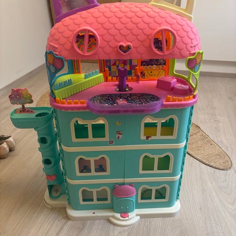 Myydään gabbyn nukketalo ilman hahmoja ja kalusteita. Yhdestä huoneesta puuttuu pahvitausta, mutta lisänä boksivauvan huone.