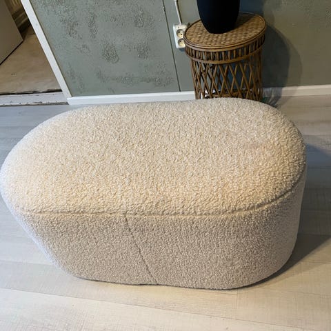 Myyntiin ok-kuntoinen valkoinen teddykangasta oleva rahi.