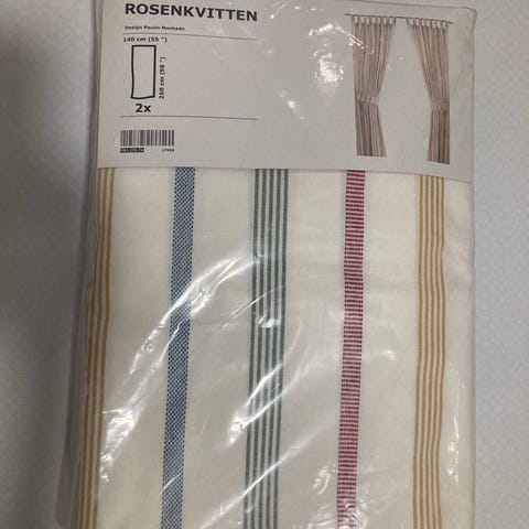 IKEA Rosenmandel verhot 135x300 cm harmaa. Pakkauksessa on verhopaneelit, joissa on yläreunassa nauhakiinnitys verhotankoon tai koukkuihin. Materiaalina kudottu kangas, väriltään harmaa. Verhot soveltuvat esimerkiksi olohuoneen tai makuuhuoneen ikkunaan tai tilanjakajaksi. Hoito-ohjeet löytyvät pesulapusta: vesipesu, silitys ja muut käsittelyt pesumerkintöjen mukaan.