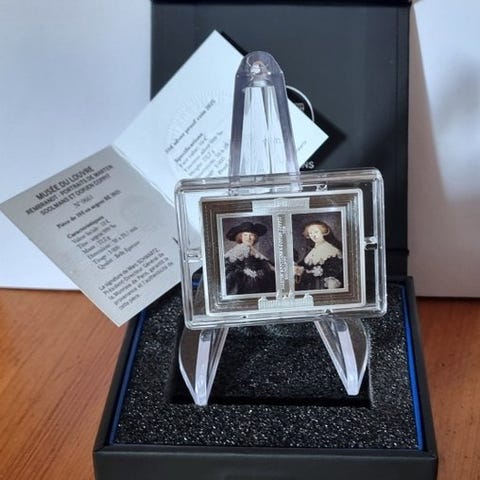 Vuosi: 2025Laatu: ProofHalkaisija: 37 mmPaino: 22,18 gMateriaal: Hopea, Ag 0,999Aihe: 80 vuotta vapaudesta Euroopassa, yhdysvaltalainen sotilasSuunnittelija(t): Joaquin Jiménez Yksitoista kuukautta Normandian rannan maihinnoususta liittoutuneet joukot ympäri Eurooppaa juhlivat natsi-Saksan antautumista. Toukokuun 7. päivänä 1945 saksalainen kenraali Alfred Jodl allekirjoitti antautumisen Ranskan Reimsissä. Eisenhowerin pääsihteeri ja eräs neuvostoliiton kenraali allekirjoittivat liittoutuneiden puolesta. Asiakirjassa todetaan, että kaikki saksalaiset sotavoimat lopettavat taistelut 8. toukokuuta 1945 klo 23.01.Historiallinen päivä, VE-päivä (Victory in Europe Day), symboloi lähes kuuden vuoden konfliktin päättymistä ja rauhan palautumista miljoonille eurooppalaisille. 80 vuotta tästä ratkaisevasta voitosta Monnaie de Paris kunnioittaa tätä historiallista tapahtumaa kunnianosoituksella suuria liittoutuneita kansakuntia kohtaan, jotka taistelivat Ranskan ja Euroopan vapautumiseksi.James, amerikkalainen upseeri 1. Infanteridivisioonasta, laskeutui Omaha Beachille. D-Dayn jälkeen yksikkö jatkoi Normandian taistelua läpimurrolla Avranchesissa (Operaatio Cobra). Seuraavaksi yksikkö osallistui Falaise-aukko -sulkemiseen. Sen jälkeen taisteltiin Monsissa ja Liègeissä Belgiassa, ennen kuin se ylitti Siegfried-linjan ja hyökkäsi Aix-la-Chapelleen. Tämän jälkeen 1. Infanteridivisio osallistui Ardennien taisteluun ennen paluutaan Saksaan. Huhtikuussa 1945 yksikkö eteni Tsekkoslovakiaan, jossa taistelut vietiin niiden viimeisiksi viikoiksi.Tämän kolikon takapuoli näyttää kaikki liittoutuneet maat, jotka virallisesti osallistuivat Normandian maihinnousuun, ympäröitynä nimellisarvolla ja RF-alkukirjaimilla. Kellon ympäri: Vapaa Ranska, Alankomaat, Uusi-Seelanti, Puola, Australia, Yhdysvallat, Norja, Iso-Britannia, Tšekkoslovakia, Kanada, Belgia.