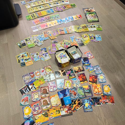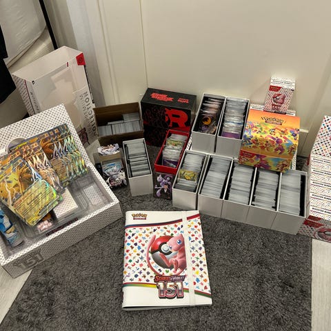 - 4 ja puol etb laatikollista 151 pelkkiä pokemon kortteja ja puol etb trainereita ja enegyjä.
