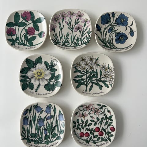 Arabia Botanica Esteri Tomula, signeerattuja kasviaiheisia seinälautaset 7 kpl