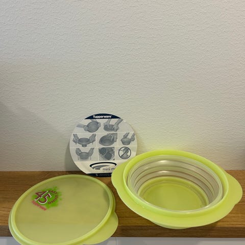 Tupperware Mini-max kasaan taittuvat kulhot 2 kpl + lävikkö. Hyväkuntoiset. Myydään yhteishintaan.
