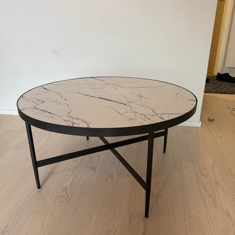 Aikanaan Kodin1 ostettu marmorijäljitelmä sohvapöytä. Halkaisija 80 cm. Runko osa murtunut. Hyvä tee se-itse projekti. Kansi ehjä ja siisti.