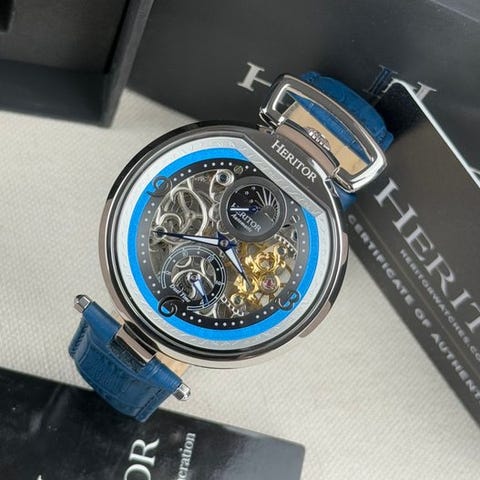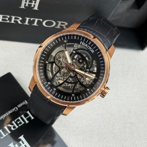 Upea herrasrannekello Heritorin Elliott-sarjasta. Viitenumero HERHS4001. Kellossa on automaattinen koneisto, joka on näkyvissä kellon takana. Koneisto on nähtävissä myös etuosassa erottuvan skeletinäytön kautta. Lukeminen on hyvän kontrastin ansiosta helppoa osoittimien ja indeksien kanssa. Varustettu erottuvasti muotoillulla kellokotelo.Uusi ja käyttämätön!Kello on mukavalla nahkarannekkeella.Toimitukseen sisältyvät kaikki esitetyt lisävarusteet sekä tyhjät asiakirjat.Koneisto: automaattinenKotelon materiaali: teräsdiameter: noin 37 mm ilman kruunuaHihnan pituus: noin 20 cm kellon kanssaIkä: 2020+Lähetys on vakuutettu.Kuvat ovat osa kuvausta.