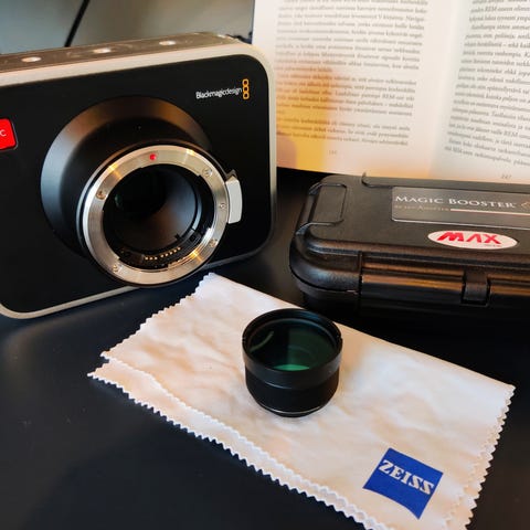 Muuntaa 2.3 crop factorin lähemmäs 1.6 ja lisää valoa. Kaksi kertaa ollut asennettuna kamerassa prokkiksia varten. Youtubesta löytyy joitain videoita, joissa näkyy miten vaikuttaa kuvan laatuun. Joillain linsseillä en saanut infinity focusta kohdilleen, mutta muutamien kymmenien metrien päähän tarkentaa. Ehjät linssipinnat ja alkuperäinen hard case. Toimii speedbooster tavoin, mutta asennetaan runkoon.
