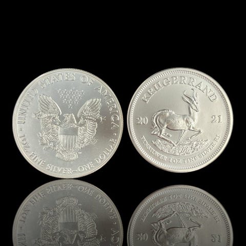 Maailman kolikotYhdysvallat2 hopeista 1 dollarin "American Silver Eagle" -kolikkoa (bullion-kolikoita) - 62,2 g1 dollari (American Silver Eagle) (bullion-kolikko) - 1990 /20091986–2021Kolikot › Ei kiertoon tarkoitetut kolikotHopea (.999) • 31,103 g • ⌀ 40,6 mmKM# 273, Schön# 216, N# 1493