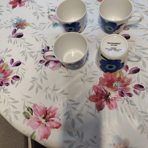 Myydään uudet Marimekon unikko kahvikupit. Mukeja 6kpl ja kaksi niistä vielä paketeissaan. Vetoisuus 2,5dl. Hinta 20€/kpl.