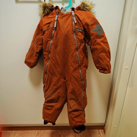 Jonkun verran pehmentymää ja kulumaa löytyy lahkeista ja pepusta.