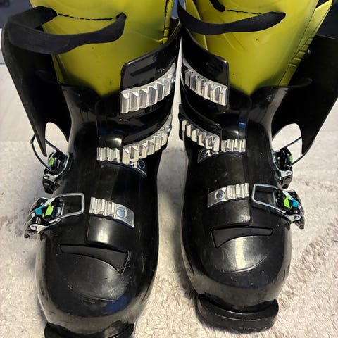 Fischer RC4 laskettelumonot. Väri musta keltaisilla yksityiskohdilla. Monossa neljä säädettävää solkea ja power strap -remmi varren yläosassa. Sopivat rinnelaskuun alppisuksien kanssa. Kova ulkokuori ja pehmustettu sisäkenkä tukevat jalkaa ja nilkkaa. Pohjassa kitkapinnat kävelyä varten.
