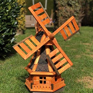 Ominaisuudet:Puinen puutarhatuulimylly, kuulalaakeroidut siivet.Käsintehty kuusikulmainen tuulimylly, jossa on monia pieniä yksityiskohtia. Myllyn pää ja yläosa on peitetty bitumipaanuilla.Tuulimyllyn pää ja siihen kiinnitetyt terät voidaan kääntää 360°. Siipipyörä, jonka jänneväli on 950 mm, on kuulalaakeroitu ja kääntyy automaattisesti tuuleen.Toimitetaan koottuna kolmeen osaan ja helppo koota.Siiven halkaisija: 950 mm, pohjan halkaisija: 500 mm, tuotteen korkeus runko: 840 mm, tuotteen korkeus siivellä: 1200 mm