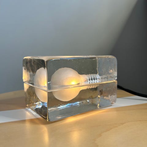 Design House Stockholm Block -pöytävalaisin, suunnittelija Harri Koskinen. Valaisin koostuu suorakulmaisesta kirkkaasta lasilohkosta, jonka sisään on muotoiltu lampunpolttimoa muistuttava muoto. Valo tulee sisälle sijoitetusta polttimosta, joka levittää pehmeää, hajavaloa lasin läpi. Sopii käytettäväksi esimerkiksi pöytä-, hylly- tai ikkunavalaisimena sisätiloissa. Materiaalina paksu lasi, väri kirkas/ läpinäkyvä. Merkin alkuperäinen designklassikko-tyyppinen valaisinmalli.