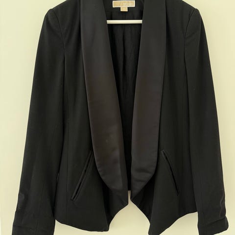 Käyttämätön Michael Kors jakku (vain laput irroitettu). Musta, jossa hieman hopeista kimallusta ja hopeiset napit. Mitat olka-helma 51 cm (takaosa 47), kai-kai 50 cm ja hiha 60 cm (olkasaumasta). Materiaali 88% polyester, 12 % villa. Toridiili tai nouto Espoosta.
