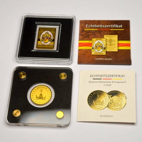999 puhdasta kultaa1/200 ozHuomaa, että tässä erässä on pieniä kultakolikoita tai -mitalia, jotka on valmistettu erittäin ohuesta kultasta. Näiden herkästi taipuvan ja hauraslaisen vuoksi tällaiset esineet ovat usein kiinnitettyinä akryyliin tai kapseloituina muoviin vaurioitumisen estämiseksi. Jos teillä on kysyttävää tästä erästä, olkaa hyvä ja ottakaa meihin yhteyttä.Katso kuvat oikean vaikutelman saavuttamiseksi.Esine lähetetään rekisteröidyllä kirjeellä seurantaluvulla.