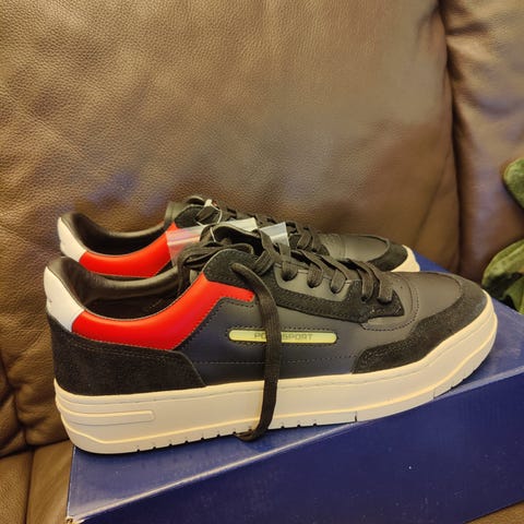 Uuden uutuuttaan Ralph Lauren -liikkeestä.Klassiset sneakerit Polo Ralph Laurenilta.Malli : "Master Court" Väri : "red multi"valkoinen, jossa on tummanpunaiset insertitYlämateriaali nahkaa, kumipohja."Polo" Vintage Signature kantapäässäKoko : EU 43Täysin uusi ja käyttämätön alkuperäisessä laatikossa.Vakuutettu lähetys Itävallan Postin kanssa.