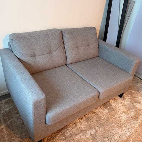 Levitettävä harmaa kahden istuttava sohva