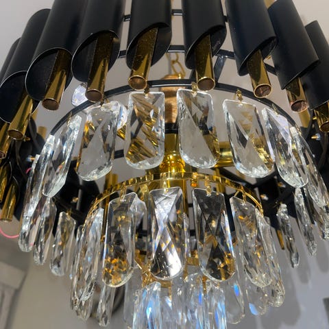 Myydään Cobellosta ostettu valaisin. Ovh 390,- yksi kristalli uupuu, tippunut.
