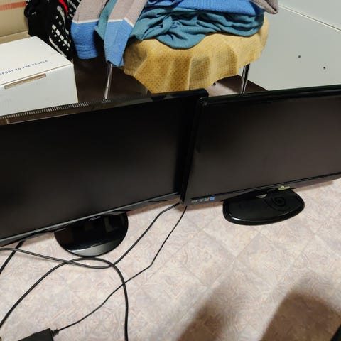Toimiva näyttö esim. kakkosnäytöksi. Displayport ja HDMI liitännät. HDMI muistaakseni vähän pätki jos kaapeliin sattui osumaan. Mukaan virtajohto ja dp kaapeli.
