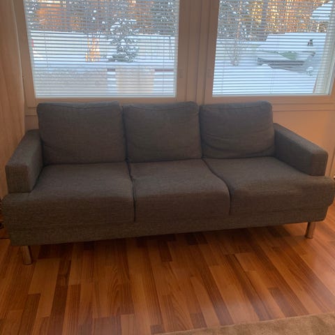 Sohva on mukava ja tukeva, ei tahroja eikä vaurioita.