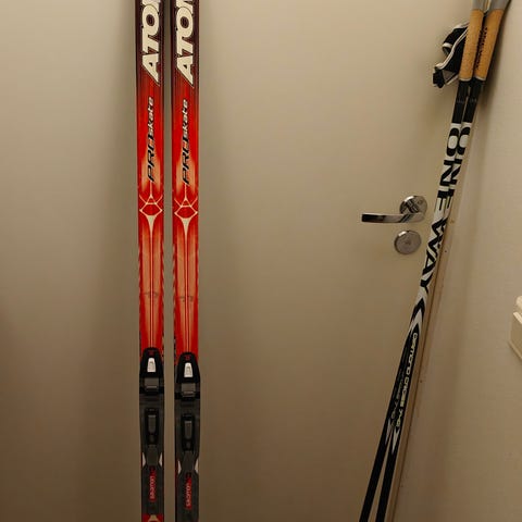 Atomic Ski tiger 160 sukset ja Yoko 120 sauvat.