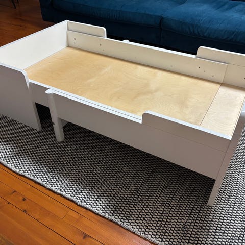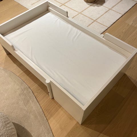 Muuramen jatkettava sänky. Reunoissa käytönjälkiä, mutta ns. normaalia kulumaa. Ei tarroja tai piirrosjälkiä.
