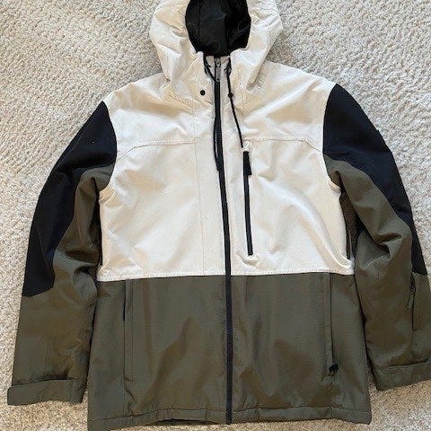 Oliivinvihreä miesten Quiksilver Mission laskettelutakki / lumilautailutakki, kokoa XL. Topattu ja lämmin kylmässäkin säässä. Lumilukko vyötäröllä, hihassa tasku hissikortille. Takki uudenveroisessa kunnossa.