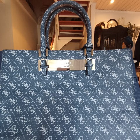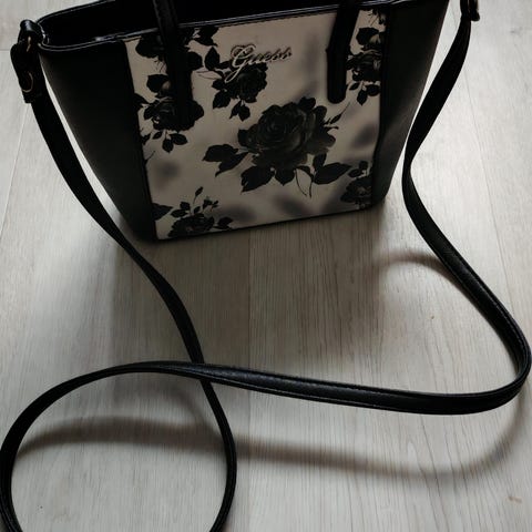 Guess laukku kerman värisenä. Mitat: 31x23x12 cm kantokahvat 35 cm. Ja olkahihna säädettävissä välillä 110-130 cm.