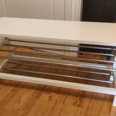 Myydään tarpeettomaksi jäänyt kenkäteline, käsittelemätöntä mäntyä. Käytön jälkiä löytyy mutta yleisilme siisti. Leveys 75 cm, syvyys noin 31 cm, korkeus 33 cm.