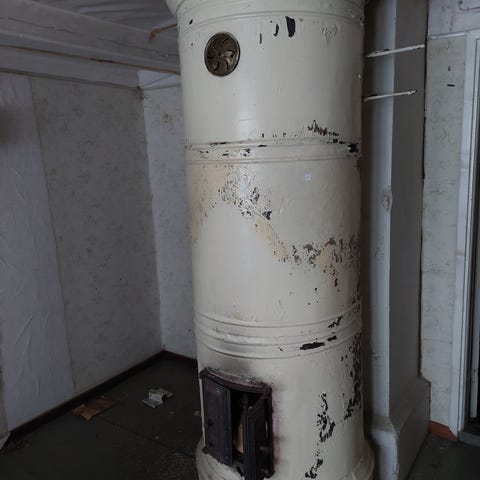 Luukku ja raami ehjä, kipinäritilät rikki. Aukko noin 45 x 45.