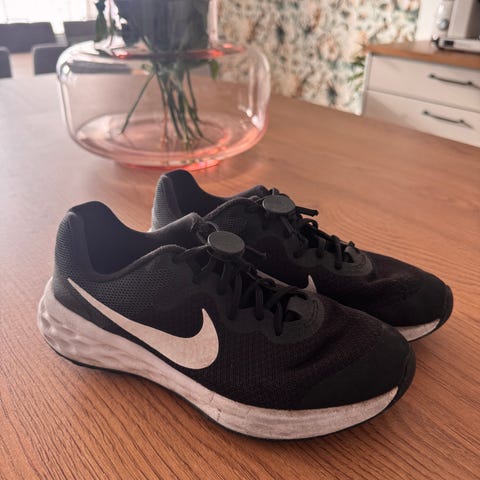 Tyttöjen kevyet sisäpelitossut kokoa 36. Edelleen käyttökelpoiset Ehjät. Kärjen Nike-merkki on kulunut ja pohjallisissa tummumaa. Pohjallisen mitta 22,5 cm.