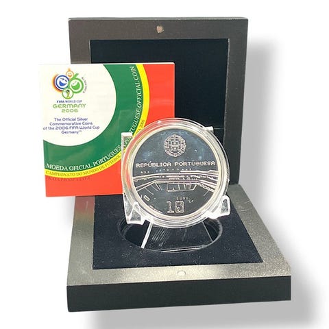 Portugali: Hopeinen Proof 10 euron kolikko - Porto-katedraali (27 g)10 euroa (Porto-katedraali; proof-kappale)2005Käyttöön kelpaamaton kolikko: Iberoamerikkalainen sarja - Arkkitehtuuri ja monumentitHopea (.925) • 27 g • Ø 40 mmKM# 820a, N# 17047Takuu-asiakirja