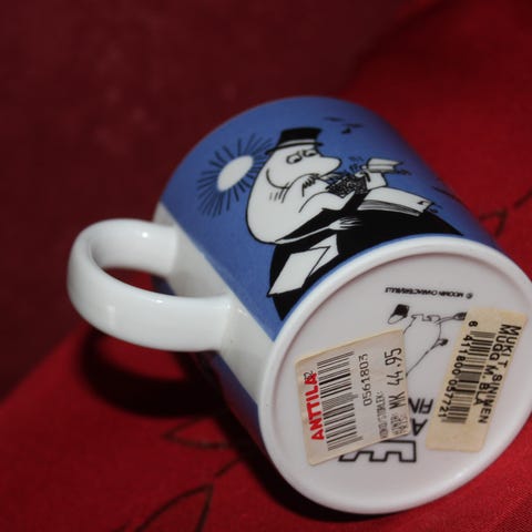 Muumimuki tumma rosa. Mukissa viivakoodi sekä ostotarra mikä tekee mukista harvinaisen keräilykohteen. Olen ostanut mukin itse kaupasta. Muki on virheetön.
