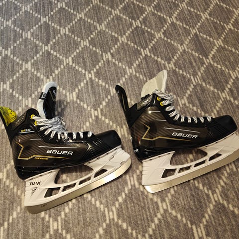 Pehmuste vähän kulunut luistinten reunasta mutta ei vaikuta luisteluun.