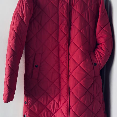 Naisten Premoda tikkitakki, hennon vaaleanpunainen. Vetoketju- ja nepparikiinnitys, 2 vetoketjutaskua, kaulukseen koottava huppu. Koko 36. Pituus olalta helmaan 67, kai-kai 52, hiha olslta ranteeseen 63 cm. Käytetty. Mutta siisti kunto. Nouto Veräjämäestä tai voin lähettää Toridiilillä.