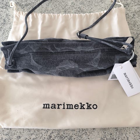 Uusi Marimekon Pikku Karla unikko Denim laukku ja dustbag.
