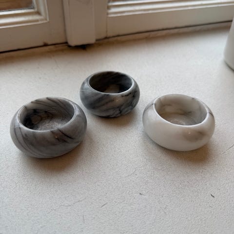 2 kpl marmori kynttilälyhtyä. Toinen on isompi.
