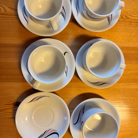 Astiasarja, johon kuuluu useita kahvikuppeja ja niihin sopivia lautasia. Väri on vaalea/valkoinen, ja astioissa on pieniä koristemerkkejä. Sarjassa on sekä matalia että syvempiä lautasia sekä tarjoilulautasia. Sopii esimerkiksi arki- tai kahviastiastoksi useammalle hengelle.