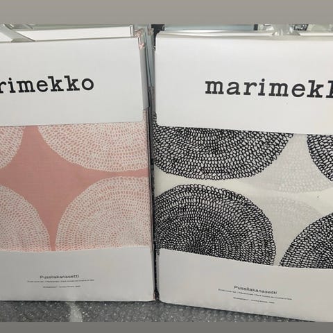 2kpl marimekon pussilakanoita 150*210cm ja tyynyliinat 50*60cm vaaleenpunanen pohja ja valkosta päällä voin lähettääkin 8,90€ postituksella