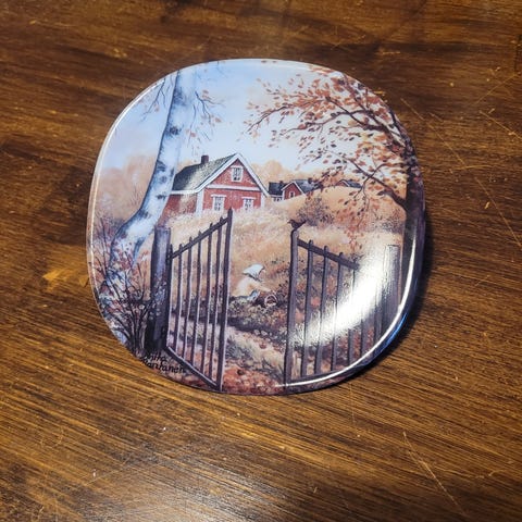 Arabian vuodenaikalautasten sarjaan kuuluva seinälautanen. Halkaisija n. 12 cm.