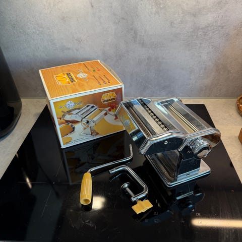 Myydään 2-3 kertaa käytetty pastakone. Ollut varmaan vuosikymmenen varastossa käyttämättömänä.
