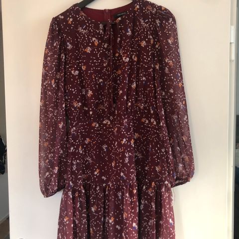 Imartelevan mallinen kapea, mutta hyvin joustava Reiss-merkin mekko. Pitkät hihat, pystykaulus, hieman läpikuultavat mesh-tyyppiset hihat, takana niskassa kaksi nappia ja halkio, kunnes puoliselästä vetoketju alas. Kunnossa ei ole huomauttamista. Koko 38, mutta materiaali joustaa molempiin suuntiin.