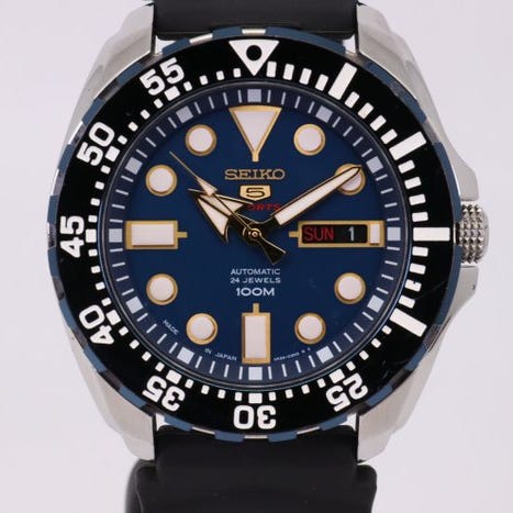 —// KUVAUS //—Malli: Seiko 5 Sports SNZG13K1 Musta taulu Sotilas Automaattinen kelloMateriaali: ruostumaton teräsTaulun väri: MustaTaulun koko: 42 mmSovitus: Sopii 19,0 cm ranteeseen. Liike: Seiko 7S36 automaattinen liikeVirranvaraus: 40 tuntiaToiminnot: Ajan pitäminen, automaattinen”winding”, viuhkapäät kädet, päivän/päivämäärän näyttö, kaksoiskieli päivyri, hehkuvat kädet ja tunnusmerkit—// TOIMITUKSEN SISÄLLÖT //—Alkuperäinen laatikko: EiAlkuperäiset paperit: Ei—// TILANNE //—Kotelon kuluminen: Pieni *(pienenlaisia merkkejä kulumisesta kotelossa, karheita jälkiä ja kevyitä naarmuja sivuilla. Otsan ulkosivun kulman saa hieman jyrkän kärkeä)Kotelon takakannen kuluminen: Pieni *(kevyt naarmut)Kristallin kuluminen: Ei mitäänEN taulu: Ei mitäänKädet: Ei mitäänKellotaulu: Pieni *(karkeita jälkiä ja kevyitä naarmuja)Kruunu: Pieni *(karhea jälkiä ja kevyitä naarmuja)Ranneke tai hihna (kuten yllä on mainittu): Ei mitään (jäljennöshihna) koruma, aftermarket nahkainen hihna, aftermarket metallinen solkiKULUMATARINOIDEN SÄÄNTÖ:Ei (Paras) > Merkityksetön > Pieni > Keskitaso > Raju > Vaurioitunut (Huonoin)— // YLEINEN ARVIO //—ARVIO: A+ / AARVIOINTI-OPAS:N - Uusi ilman käytön merkkejä.S - Lähes mint condition, vähäisiä käytön merkkejä.A+ - Erittäin hyvä kunto, käytetty vähän kulumaa.A - Hyvä kunto kevyiden käytön merkkien kanssa.B+ - Kohtuullinen kunto ilmeisillä käytön merkeillä.B - Huono kunto raskaiden käytön merkkien kanssa.V - Yli 20 vuotta vanha ja vintagellä, ilmeisiä käytön merkkejä.ND - Pelastettavassa kunnossa, ei toimi tai tarvitsee huoltoa. Saattaa puuttua osia.—// TOIMITUSTAPA //—PALVELIJA: FedEx Economy tai vastaava—[[[ ASIAKKAAT HUOMIO //]]][KUVIA]- Kaikki kuvat eivät ole retussoituja (poikkeuksena sarjanumerot, jotka on piilotettu turvallisuussyistä). Kaikki kuvissa näkyvät viat, joita ei mainita kuvauksessa, ilmoitetaan kuvaustekstissä kuvaushetkellä. Kuvat kertovat tuhat sanaa, joten pyydämme tarkastelemaan kuvia huolellisesti ennen tarjouksen tekemistä, sillä ne muodostavat olennaisen osan kuvausta. Arvostan asiakassuhdettani, joten en halua olla pettymys, kun tavara saapuu.[Täsmällisyys]- Tarkkuus testataan jokaisessa kellossa vaakatasossa (risteinen taulu ylöspäin) täysin kierretyllä virrankäytöllä, ja sen katsotaan olevan tyydyttävä ajan pitämiseksi ennen varastostamme lähtöä. Tarkkuuteen voivat vaikuttaa käsivarren käyttöaika, käsien liike ja jousen jännitys. Yli 10 vuotta vanhat kellot voivat kokea suuremman tarkkuuden vaihtelun mekaanisen kulumisen vuoksi.[AUTENTIIKKUUS]- Kaikki myymäni kellot ovat aitoja. Yritän merkitä kaikki aftermarket-osat, joiden voin tunnistaa, niin hyvin kuin tiedän. Arvioi tuotetta kuvien perusteella, sillä ne on otettu vastaanottamastasi kappaleesta. Kirjallinen kuvaus on vain apuväline, kun kuvat eivät näytä virheitä täydellisesti. (paitsi uusien tuotteiden osalta, joissa kuvat voivat olla peräisin aiemmista listauksista).[KELLON HOITOVINKIT]- Kellot eivät kuulu suihkuun tai kylpyyn käytettäväksi. Kuuma vesi ja saippua voivat heikentää kellon kumisaumoja ja aiheuttaa vuotoa. Lisäksi sumu (vesihöyry) on vähemmän tiheää kuin vesipisarat ja pääsee helpommin kellon sisälle. Älä käytä kelloa suihkun/kylvyn aikana tai pidä sitä korkeaa kosteutta sisältävässä ympäristössä (esim. kylpyhuoneessa suihkun aikana).[VÄRIN SUOJELU]