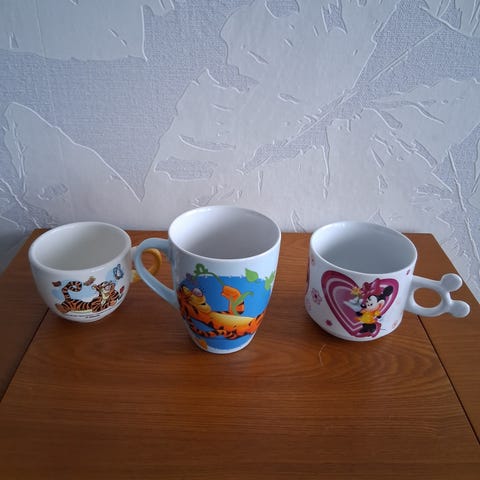 Myydään Disney-mukit 4 kpl. Mukeissa: Nalle Puh, Nasu, Tikru ja Ihaa.