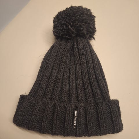 Marimekko pipo naisille. Harmaa villapipo, koko one size. Materiaalina villa, jossa hoito-ohjeet sisäpuolen pesulapussa.