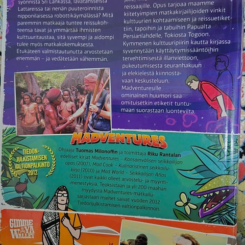 Myydään Tuomas Milonoffin ja Riku Rantalan Madventures Mad manners seikkailijan etiketti opas maailman tapoihin sekä Tokio Clash japanilaista popkulttuuria. kirjat erittäin hyvässä kunnossa.