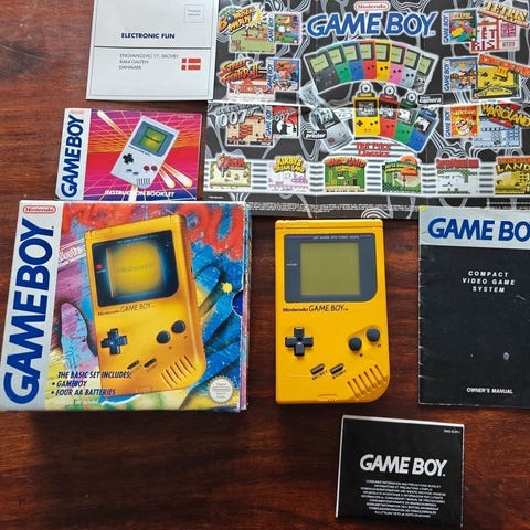 Myyntiin todella hyvässä kunnossa oleva alkuperäinen Gameboy Color (CGB-001) pirteän keltaisen värisenä. Juuri puhdistettu ja vaihdettu uudet paristot. Toimii erittäin hyvin, käynnistysnäppäin ei jumittele, äänet pelaa hyvin, näyttö käynnistyy normaalisti ja peli latautuu nopeasti. Alkuperäinen paristonkotelo/patterinkansi. Katso kuvat. Kuvissa näkyvä peli ei kuulu kauppaan, se on vain esimerkkinä toimivuudesta.